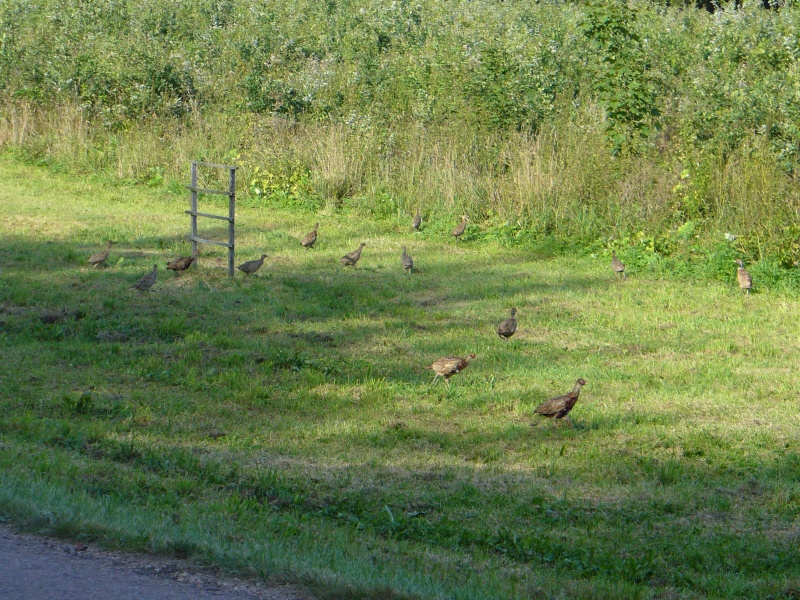 Po neúspěchu a "ostudě", kterou jsem udělala na Havlíčkobrodském poháru mě panička nenechala ležet a zahálet a cvičily jsme dál. Nedalo se nic dělat a panička chtěla zúročit to, co mě naučila ke splnění lesních zkoušek. Nebylo ovšem jednoduché se na nějaké zkoušky aspoň v sousedním okrese dostat. Moji kamarádku Ebi přihlásili Dita a Tom Kopeční na lesní zkoušky v okrese Hradce Králové, ale tam už bylo plno. I tak moje panička zkoušela, jestli by nás tam nevzali a až v úterý nám paní Kolářová z OMS volala, že se uvolnilo místo a že nás bere. A tak jsem se 18.8.12012 vydaly samy s paničkou na lesní zkoušky. Vyjely jsme brzy ráno, protože nás čekala 100km cesta. Když jsme přijely do prostoru, kde se zkoušky měly konat, zabušilo mi srdce potěšením a paničku polilo horko. Všude se pohybovaly desítky lehce opeřených bažantů a to včetně okolo ohrádky a za ní byl ještě ke všemu zásyp, kam se chodila spousta těch opelichanců v nepravidelných intervalech posilňovat. Vždyť doma takového opeřence není možno v přírodě vůbec vidět ani cítit.